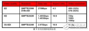 SDI,串行数字接口,是用来传输标清、高清、3G 高清等无压缩数字视频信号的一个标准,当前最流行的SDI视频格式如表1所示。由于SDI具有高清特性,时延小,还可以重复利用已布网的模拟视频电缆等优势,正逐渐地被安防、监控等领域广泛采用。目前市面上SDI相关设备主要是SDI延长器、分配器、矩阵、多画面分割、编解码器、SDI光端机、DVR等。