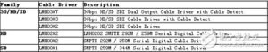 SDI 线缆驱动器用来加强对线缆的驱动能力,提供标准的800mV 峰峰值输出电压摆幅,没有预加重和去加重功能。TI 的线缆驱动器系列如表4 所示。