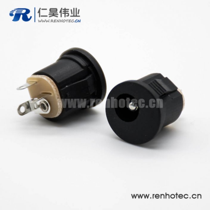 DC电源插座是一种与电脑显示器专用电源相配的插座,它是由横向插口、纵向插口、绝缘基座、叉型接触弹片、定向键槽组成,两只叉型接触弹片定位在基座中心部位,成纵横向排列互不相连。叉型接触弹片一端为接线口,外露在基座圆柱体顶面,供连接输入电源软线或软缆用,叉型接触弹片另一端由基体互连的两只弹性臂组成,设置在DC插头插入方向绝缘基座插孔内,供给电脑显示器之用,使之正常工作。