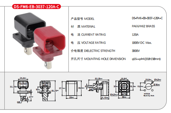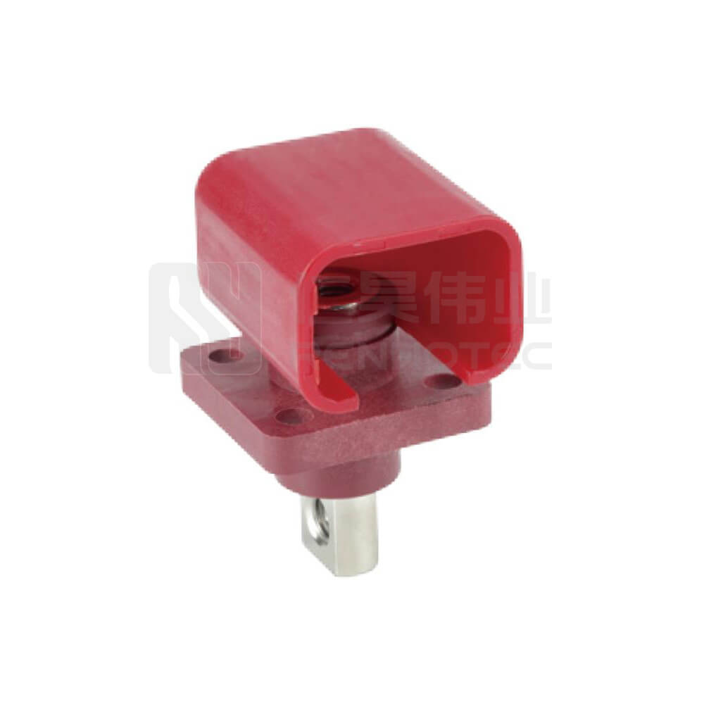 英文描述:Single Stud Type Junction Blocks, 120A, Internal Screw (M6), Busbar with M6,Flange Mounting, With Cap, Red
