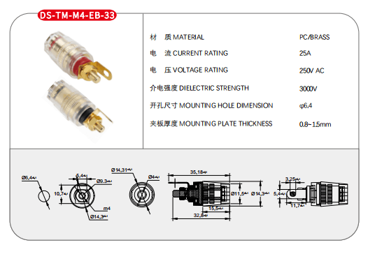 英文描述:Binding Post Terminal Connectors,25A,Outer Screw(M4), Red