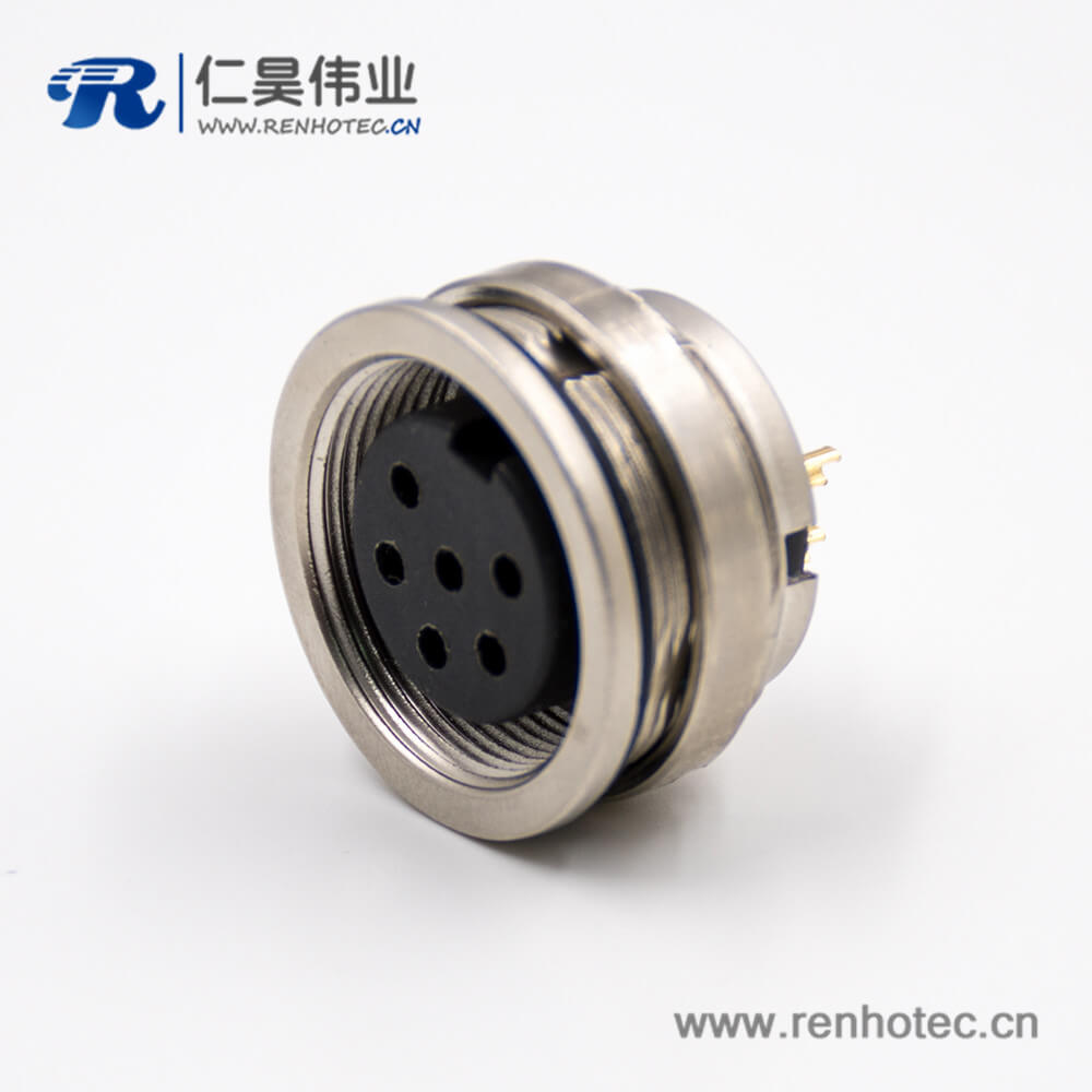 料号:M16-06-A-S-2-S-B 标签:M16板端插座,A扣,6芯,母头,直式,后锁板,接线,焊接式