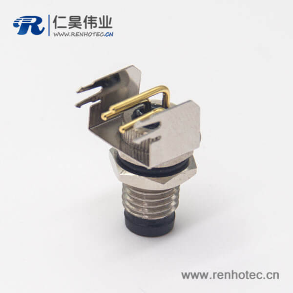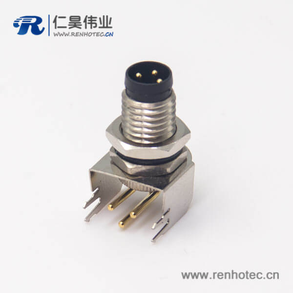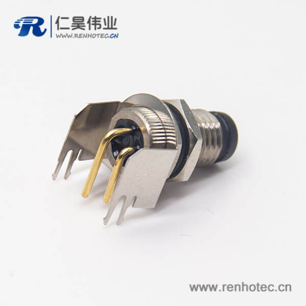 料号:RHT-634-1156 标签:M8,3芯,板端插座,母头,弯头,面板安装,前锁板,插PCB板