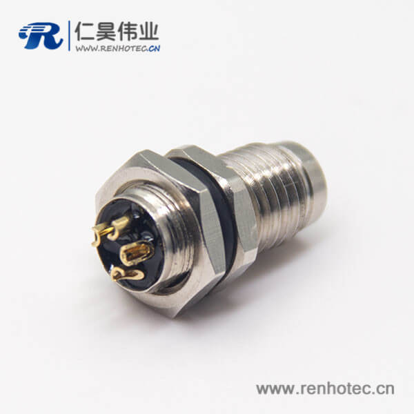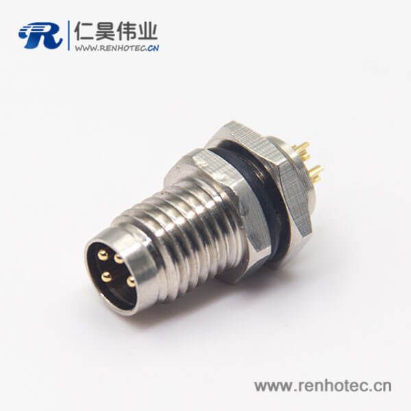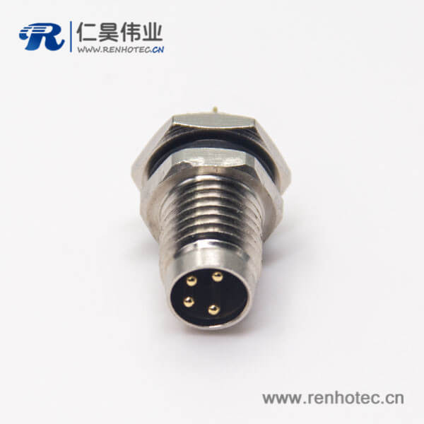 料号:RHT-634-1238 标签:M8,4芯,板端插座,公头,直式,前锁板,面板安装,焊线
