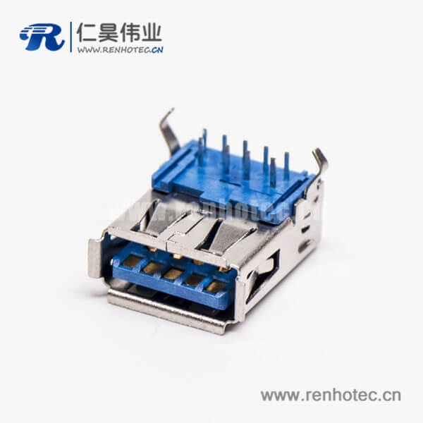 usb3.0母头type a 弯头侧插式蓝色胶芯接板